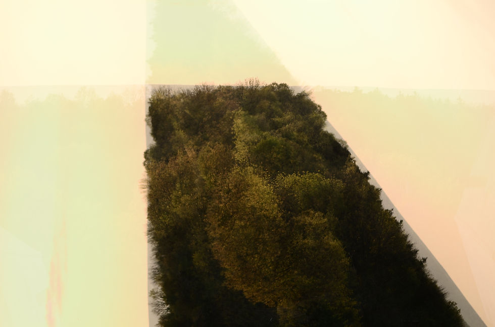 Using multiple exposures, she manipulates her environment by adjusting focus and camera orientation to create a new form: an altered scene that deviates from each photo’s original state and challenges the viewer to view both from a new perspective.